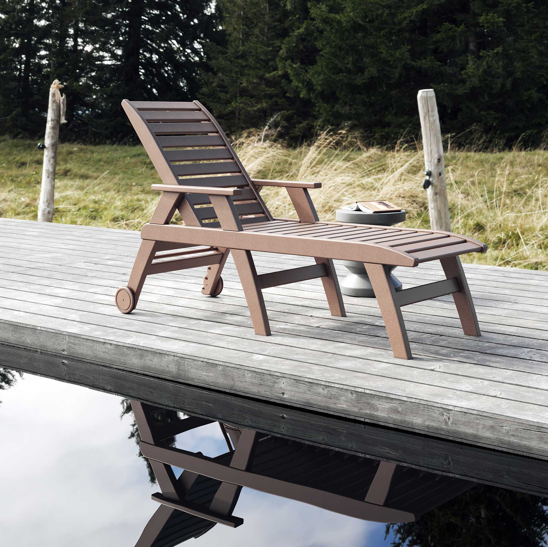 Relax in style with this durable outdoor chaise lounge, crafted from weather-resistant poly lumber that mimics the look of real wood without the upkeep. Designed for lasting comfort and effortless maintenance, it’s perfect for poolside lounging or sunny patios.